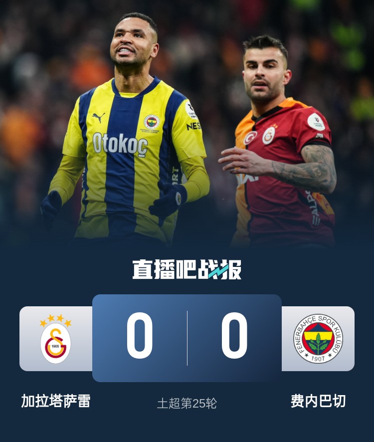 焦點(diǎn)大戰(zhàn)戰(zhàn)平!土超積分榜:費(fèi)內(nèi)巴切落后加拉塔薩雷6分 仍居第二