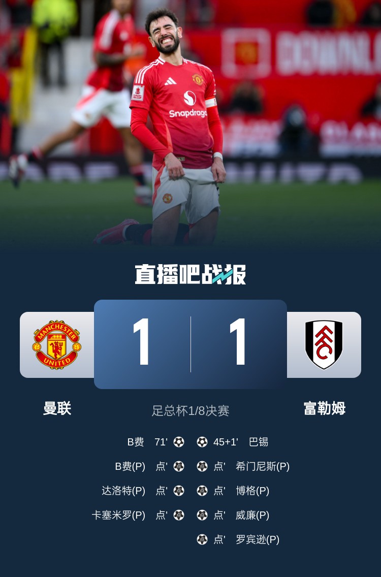 止步足總杯16強(qiáng)!曼聯(lián)點(diǎn)球戰(zhàn)4-5富勒姆 林德洛夫齊爾克澤失點(diǎn)